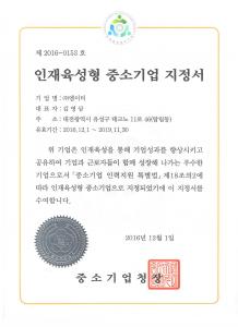 인재육성형 중소기업 지정서